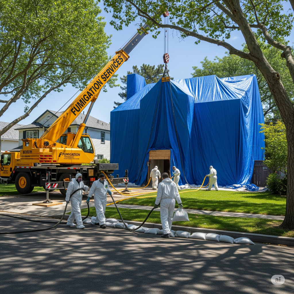 Finally, you accept the inevitable . . . you call for the experts. Neighbors watch with curiosity through their windows as the trucks roar by. A massive crane plows into the yard, cutting huge ruts into your immaculately trimmed lawn and crushing your azalea bushes. Your shame mounts as neighbors drive slowly past your home, pointing at the huge truck in the driveway marked with large garish letters, “FUMIGATION SERVICES.” An army of men trample through your home, their heavy boots leaving deep tracks in your luxurious carpet. They seal up the windows and doors with heavy caulking and run strips of tape over every seam and joint. Outside, men in a bucket suspended from the crane drop a series of heavy tarps over the roof, eventually encasing the entire house. They lay sandbags around the perimeter, ensuring that nothing can get in and nothing can get out. It is difficult to watch, but you understand it must be done.